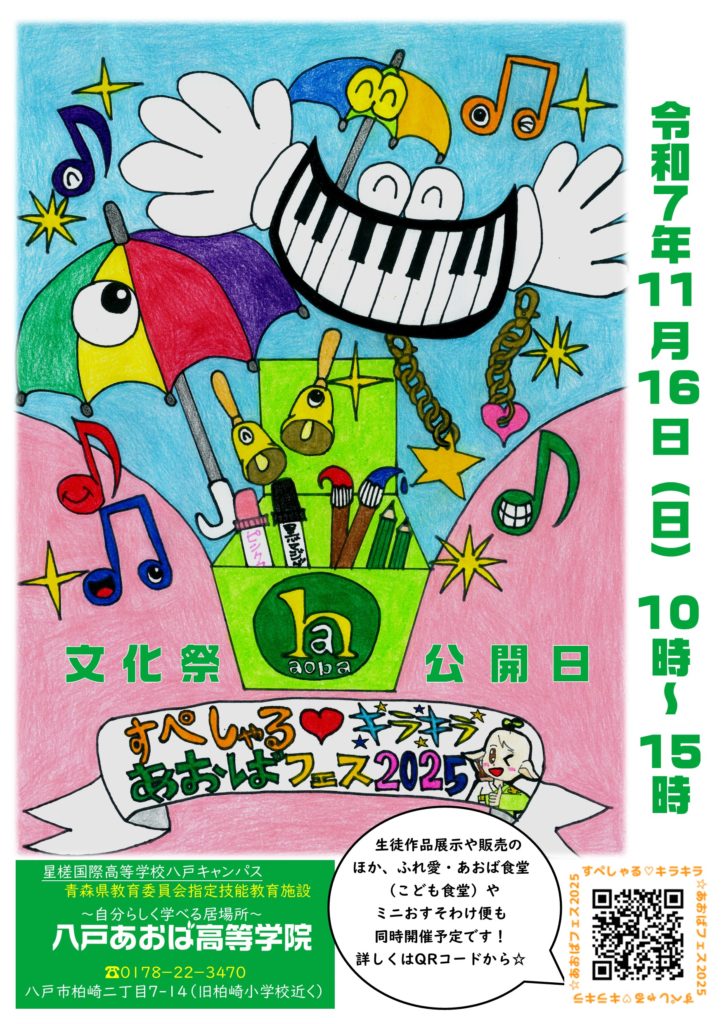 下記の通り,「第6回 八戸あおば高等学院 文化祭」を開催いたしますのでお知らせいたします。